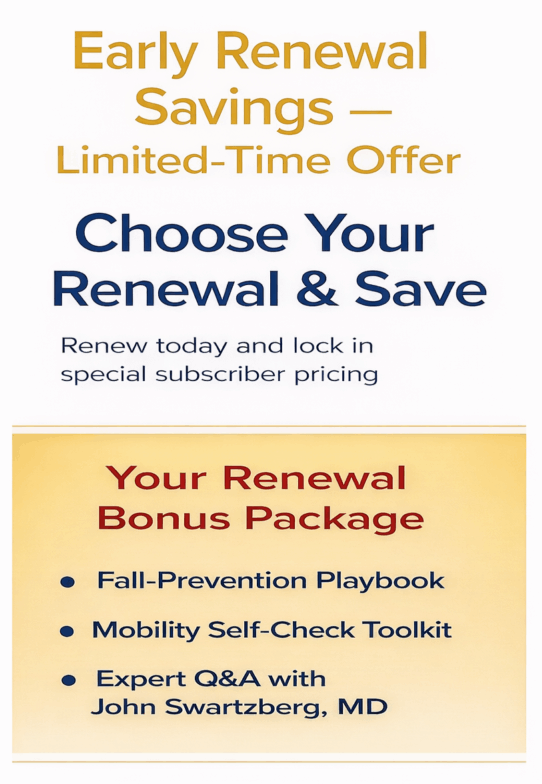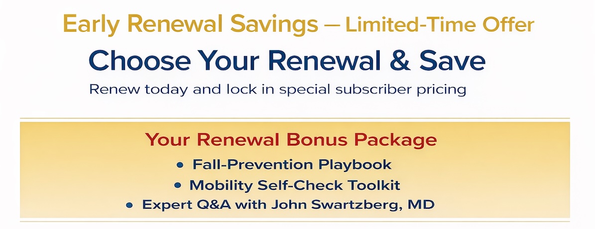 Your subscription may still have time left. This renewal will be added to your current expiration date. You’ll receive links and instructions for how to download and read your Bonus Package and attend the Q&A with Dr. Swartzberg.